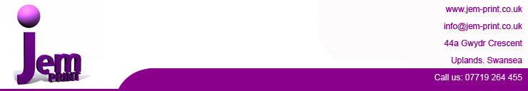 Welcome to Jem-print.co.uk We are a Print company based in the heart of Brynmill, Swansea & situated 5 mins from Swansea University. Jem Print provide customers from a broad spectrum with the following services: